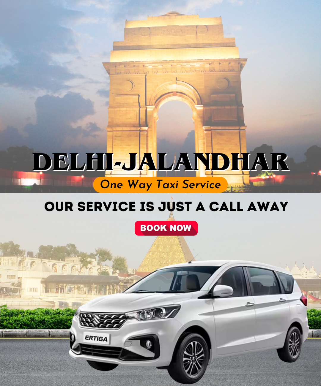 We are providing One way taxi service from Jalandhar to Delhi or Delhi to Jalandhar.